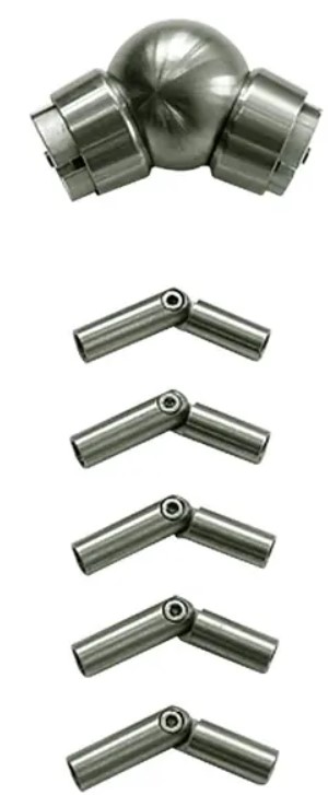 Rohová sada ES1 od značky Treba je vhodná pro sady zábradlí s nerezovým madlem. Je tvořena variabilním rohovým spojovacím dílem kulovitého tvaru, který je určen ke spojování madel a rohovými spojovníky pro nerezové tyče. Úhel lze nastavovat v rozmezí 90 a 180°.