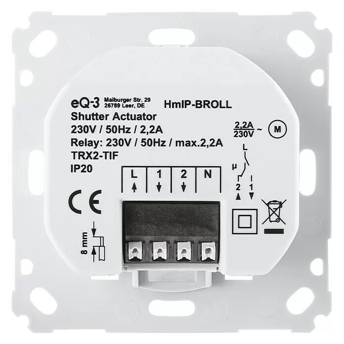 Homematic IP roletový spínač HmIP-BROLL-2 je bezdrátový. Pomocí individuálních plánů lze roletu automaticky zvedat nebo spouštět v předem určený čas. Aplikace Homematic IP má také funkci ochrany proti přehřátí, uzamčení nebo bouřce. Poskytovatel stínění lze ovládat přímo na zařízení pomocí přepínačů, příslušného dálkového ovládání nebo pomocí aplikace.