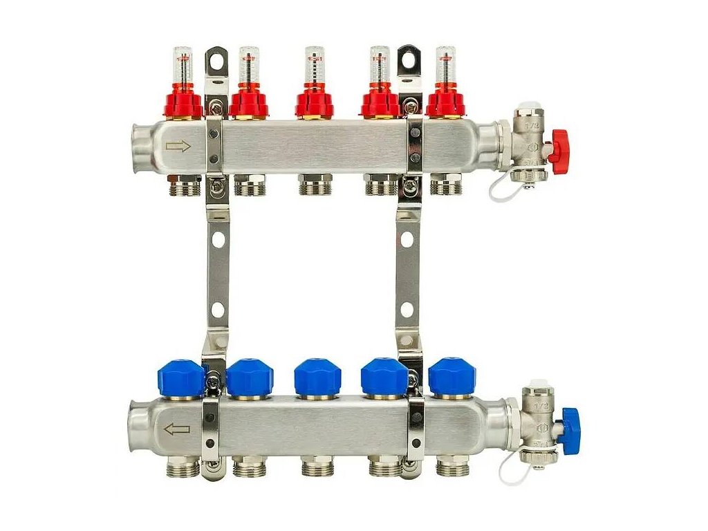 Rozdělovač pro podlahové topení / 5 okruhů / 35 x 26 x 7 cm / nerezová ocel