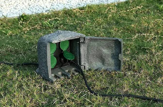 Napájecí rozvaděč Power Rock má dekorativní kamenný vzhled a používá se jako praktické připojení venku/na zahradě, například jako možnost připojení pro sekačky na trávu s 10 m pryžovým připojovacím kabelem a 4 zásuvkami s odklápěcím krytem. Materiál se skládá ze směsi kamenného prášku a syntetické pryskyřice. Elektrická součást musí být instalována autorizovaným odborníkem.