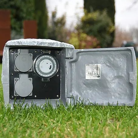 Prodlužovací kabel Unitec s efektem kamene je ideálním řešením pro nenápadné a bezpečné rozvedení elektřiny ve vaší zahradě. Díky realistickému kamennému vzhledu splyne s okolní krajinou a nepůsobí rušivě ani v pečlivě upravených exteriérech. Nabízí 2 uzemněné zásuvky se sklopnými kryty, které chrání proti stříkající vodě, a navíc je vybaven mechanickým časovačem s denním programem, který umožňuje pohodlnou automatizaci osvětlení, čerpadel či zahradních dekorací. Robustní konstrukce z odolné pryskyřice a krytí IP44 zaručují spolehlivý provoz v teplotách od –15 °C do +40 °C. Součástí je také 1,5m napájecí kabel H07RN-F 3G1,5 mm², ideální pro venkovní použití.