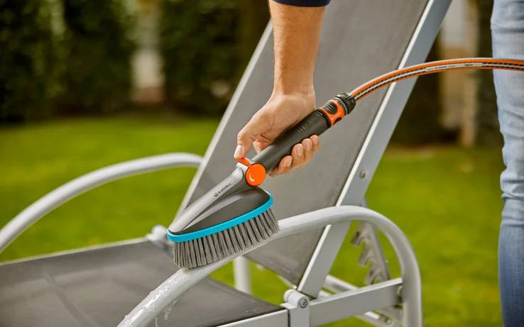 - Ruční kartáč Gardena Cleansystem M / přípojka na hadici / měkký / šedá