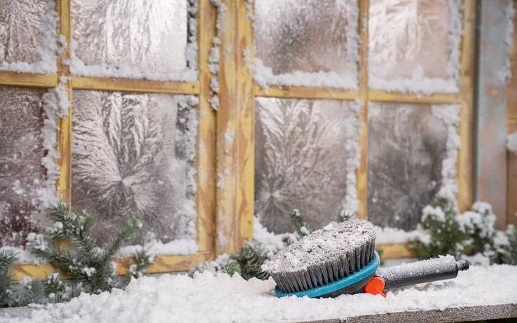 Díky ochraně proti mrazu a UV záření může čistící kartáč zůstat venku za každého počasí.