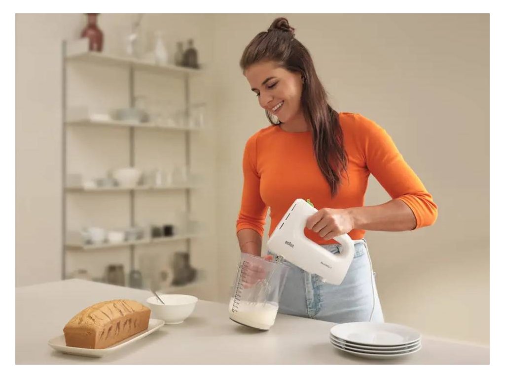 Elektrický mixér Braun MultiMix1 je vhodný pro pečení a vaření. Mixér disponuje výkonným 450 W AC motorem a využívá technologii FastMix, díky které je konečného výsledku dosaženo rychle. Zařízení má 4 nastavení rychlosti a funkci Turbo, která poskytuje další výkon. Součástí prodejního balení jsou kromě přístroje ocelové šlehací metly a háky na těsto, které lze snadno vyjmout a připevnit.