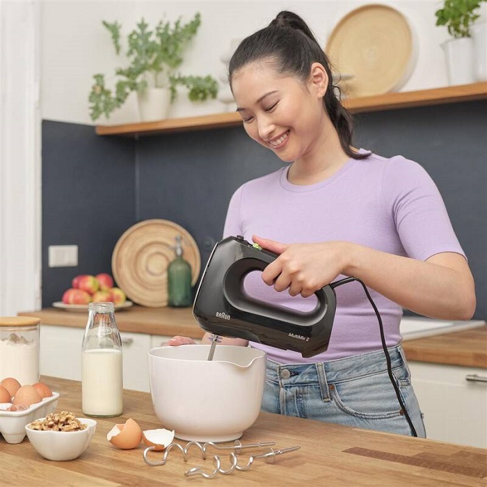 Lehká konstrukce dovoluje velmi pohodlnou manipulaci. Zpracování hutného těsta bude s technologií SmartMix až o 40 % jednodušší. Funkční DC motor má opravdu tichý chod, který nebude rušit běžnou konverzaci. Systém EasyClick dovoluje okamžitou a snadnou výměnu příslušenství. Odnímatelné části je možné mýt v myčce na nádobí. Elektrický kabel má dálku 1,25 metru a je možné ho omotat okolo šlehače. Praktická zarážka udrží kabel na místě a brání jeho sklouznutí.
