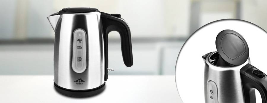 Varná konvice ETA Adéla je skoro celokovová a její ladně zaoblené tvary umožňují velmi snadnou údržbu. Když ji krásně naleštíte, stane se nastálo ozdobou vaší kuchyňské linky. Praktický oboustranný vodoznak vám bez delšího hledání ukáže množství vody v konvici. Její maximální kapacita je 1 litr. Topné těleso, zabudované v nerezovém dnu konvice, vám taktéž usnadní čištění konvice.