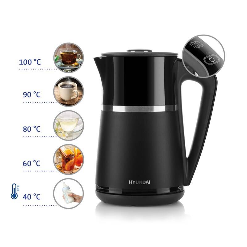 Aby daný pokrm či nápoj neztratil nic ze svých živin, je nutné vodu ohřát na správnou teplotu. S konvicí Hyundai VK309 si můžete vybrat z 5 teplot, a to od 40 do 100 °C: 40 °C je teplota vhodná pro kojenecké mléko, 60 °C pro zelené čaje, 80 °C nastavte pro čaje bílé, 90 °C se hodí pro čaje oolong, kávu, instantní nápoje a polévky, 100 °C je teplota ideální pro černé a bylinné čaje.