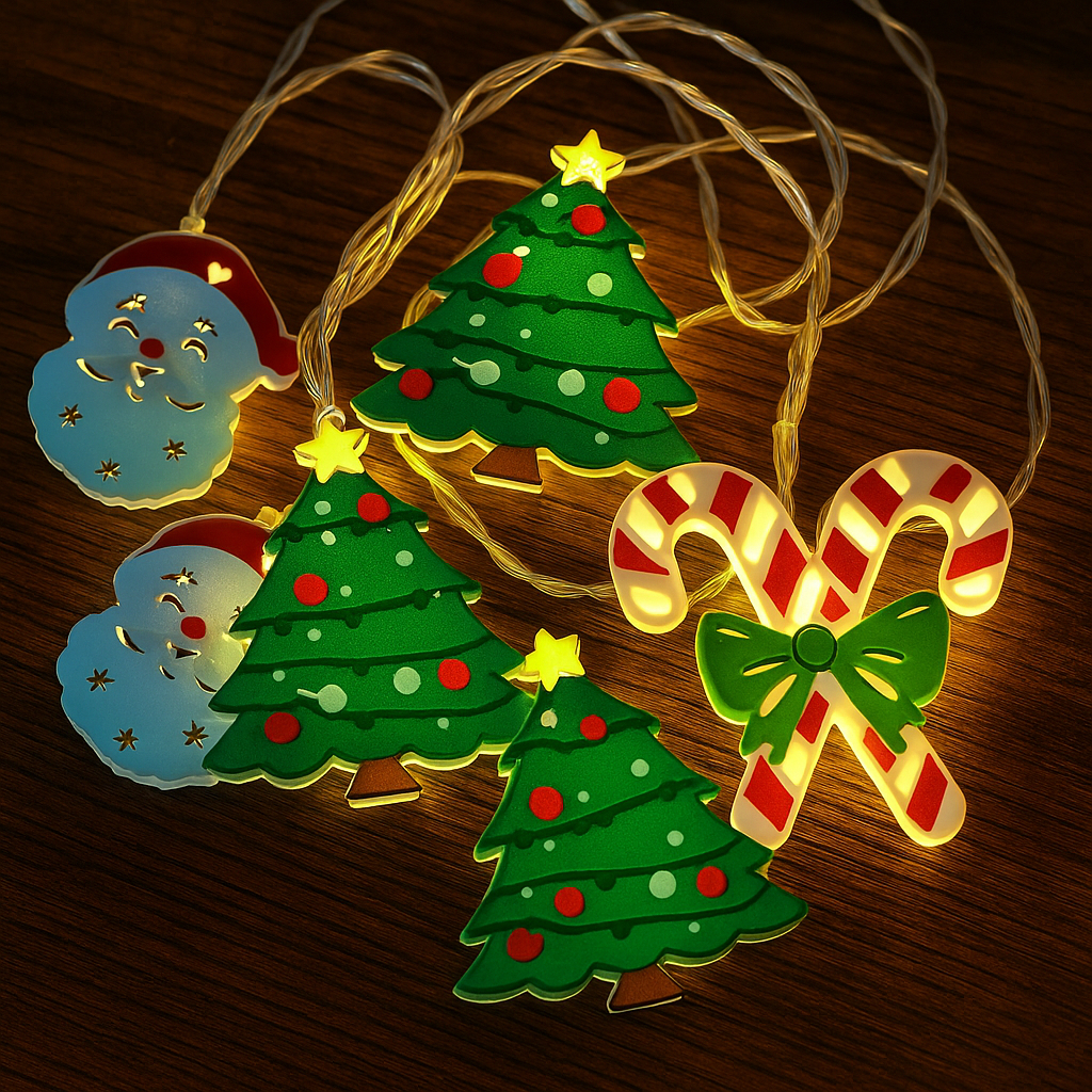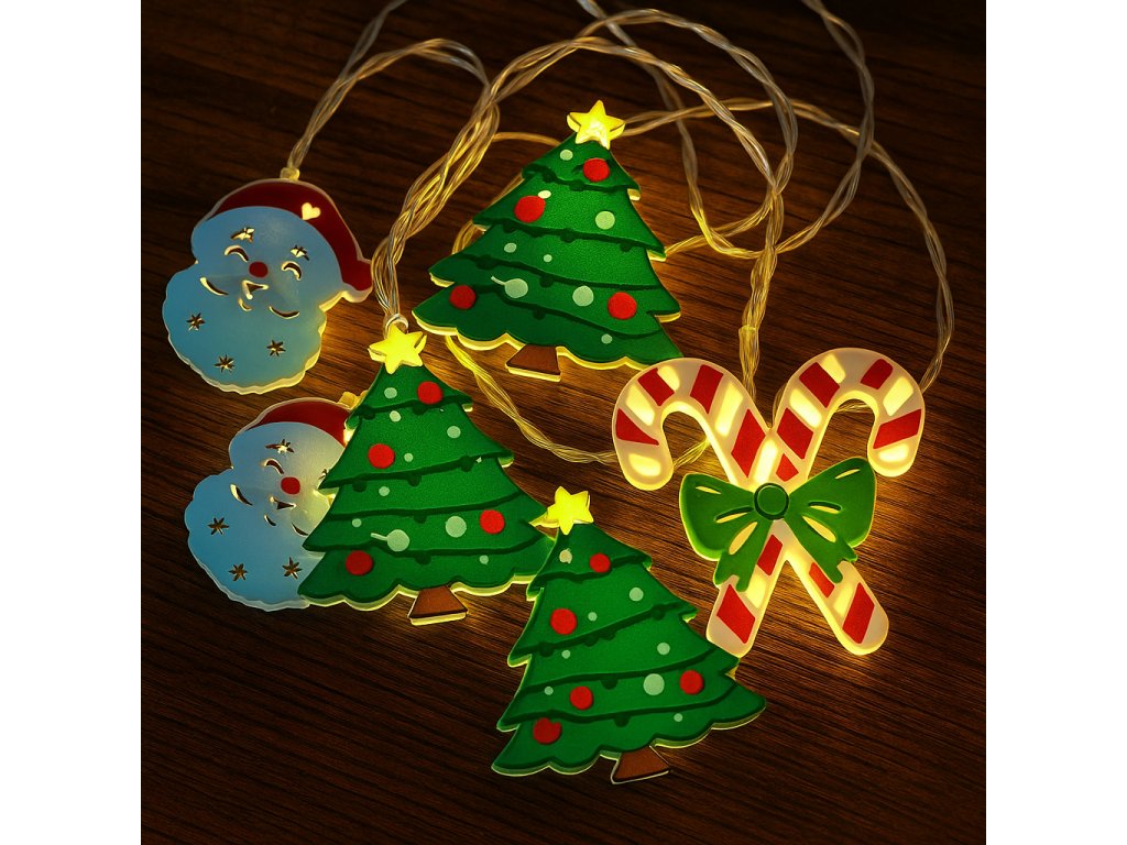 Rozjasněte svůj domov vánočním kouzlem s LED sadou 3 dekorativních řetězů! Součástí jsou roztomilé motivy vánočního stromku, Santa Clause a cukrové tyčinky. Každý řetěz je dlouhý cca 2 m s 10 světelnými motivy, které rozzáří každý kout vašeho interiéru. Díky bateriovému napájení (6× AA) a praktickému časovači 6/18 h se můžete těšit na sváteční světlo bez starostí. Perfektní volba pro útulnou a slavnostní domácí dekoraci, která nadchne malá i velká srdce.
