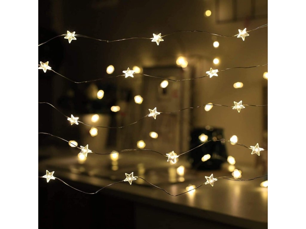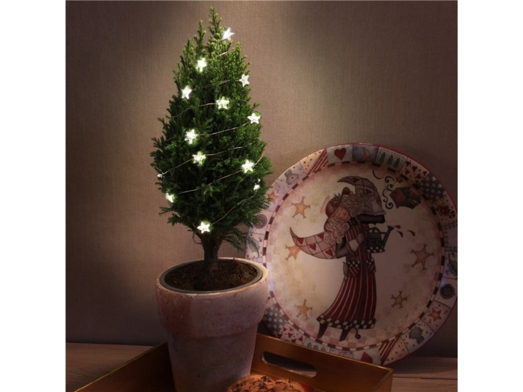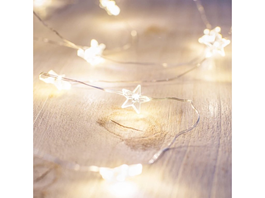 S Sadou 3 světelných LED řetězů Santa’s Express – hvězdy proměníte každý prostor v zimní pohádku. Každý z řetězů má délku 3 metry a je vybaven dálkovým ovládáním, které vám umožní pohodlně přepínat mezi 8 světelnými režimy – od jemného mihotání až po veselý blikot. Díky časovači se světla automaticky rozsvítí a zhasnou podle vašeho nastavení. S ochranou IP44 jsou řetězy vhodné pro vnitřní i venkovní použití, takže rozzáří váš obývák i zahradu. Úsporné LED diody s příkonem pouze 0,2 W a napájením 4,5 V zajistí dlouhou výdrž a minimální spotřebu.