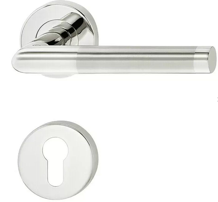 Tato elegantní rozetová sada od Häfele je vyrobená z nerezové oceli. Je vhodná pro montáž na pokojové dveře o tloušťce 38 - 42 mm a lze ji instalovat jako levé i pravé otvírání. Klika dveří je namontována tak, aby se dala otáčet a je vybavena přidržovacím mechanismem. Díky vysoce kvalitnímu vzhledu a jednoduchému designu lze sadu dveřních klik integrovat do mnoha konceptů místností. Mají tvar zámku PZ, jenž je pro kliky s otvorem pro zámkovou cylindrickou vložku (neboli FAB).