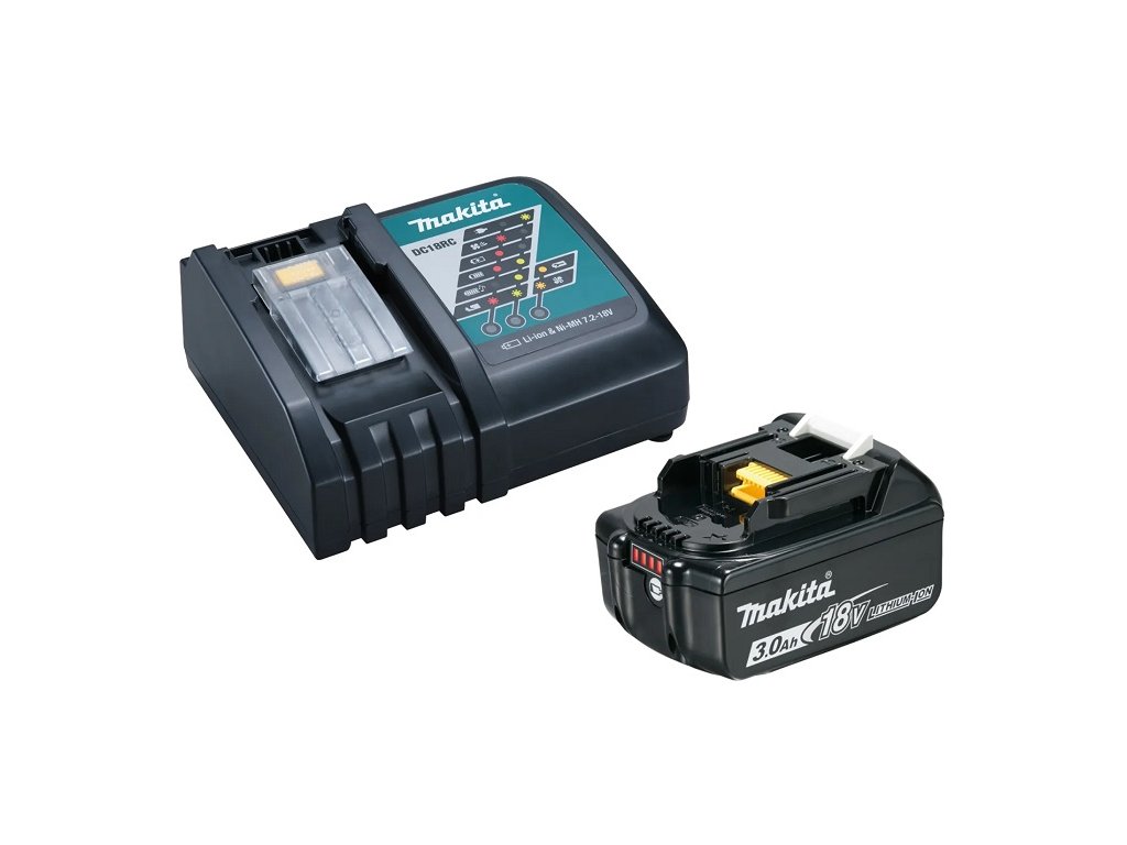Energetická sada Makita skládající se z lithium-iontové baterie BL1830B a rychlonabíječky DC18RC. Akumulátor Makita BL1830B s kapacitou 3,0 Ah zaujme maximální výdrží a velmi nízkou hmotností. Díky nízkému samovybíjení, ochraně proti zkratu, přepětí a přehřátí má akumulátor maximální životnost. Akumulátor BL1830B je také vybaven LED indikátorem stavu nabití pro kontrolu zbývající energie v akumulátoru. Rychlonabíječka Makita DC18RC zajišťuje dlouhou životnost baterie díky aktivnímu chlazení.