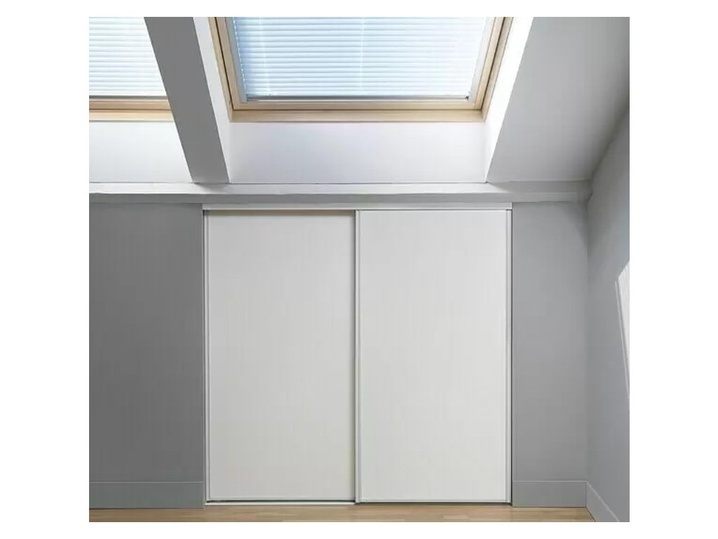Sada posuvných dveří je vhodná zejména jako řešení kolenní opěry. S tímto systémem lze jinak nevyužité šikmé stropy chytře využít jako úložný prostor a atraktivně je opláštit. Sada se skládá ze dvou oboustranných panelů – přední/zadní v bílé/šedé – které lze individuálně zkrátit na výšku. Profil boční rukojeti je žárově zinkovaný a proto extrémně odolný. Instalace sady posuvných dveří je extrémně rychlá a snadná.