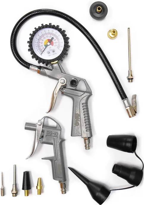 Toto příslušenství výrazně zvyšuje variabilitu použití kompresoru – od huštění pneumatik přes čištění strojů a dílů až po nafukování sportovních potřeb nebo matrací. Díky kompaktnímu balení a pevnému provedení jsou všechny komponenty snadno skladovatelné a přenosné, což ocení jak domácí kutilové, tak profesionálové v dílně či autoservisu.