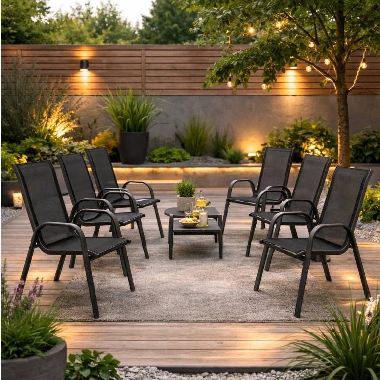 Moderní design a pohodlné posezeníKvalitní zahradní křesla v elegantním provedení skvěle doplní vaši zahradu, terasu i balkon. Díky nadčasovému vzhledu se snadno kombinují s dalším venkovním nábytkem. Ergonomicky tvarovaný sedák a opěradlo poskytují dostatečnou oporu zad i pohodlí při delším sezení. Ideální volba pro rodinné posezení, grilování i odpočinek na čerstvém vzduchu. TIP: Křesla doplňte o zahradní stolek a vytvořte si příjemný kout pro ranní kávu nebo večerní posezení.