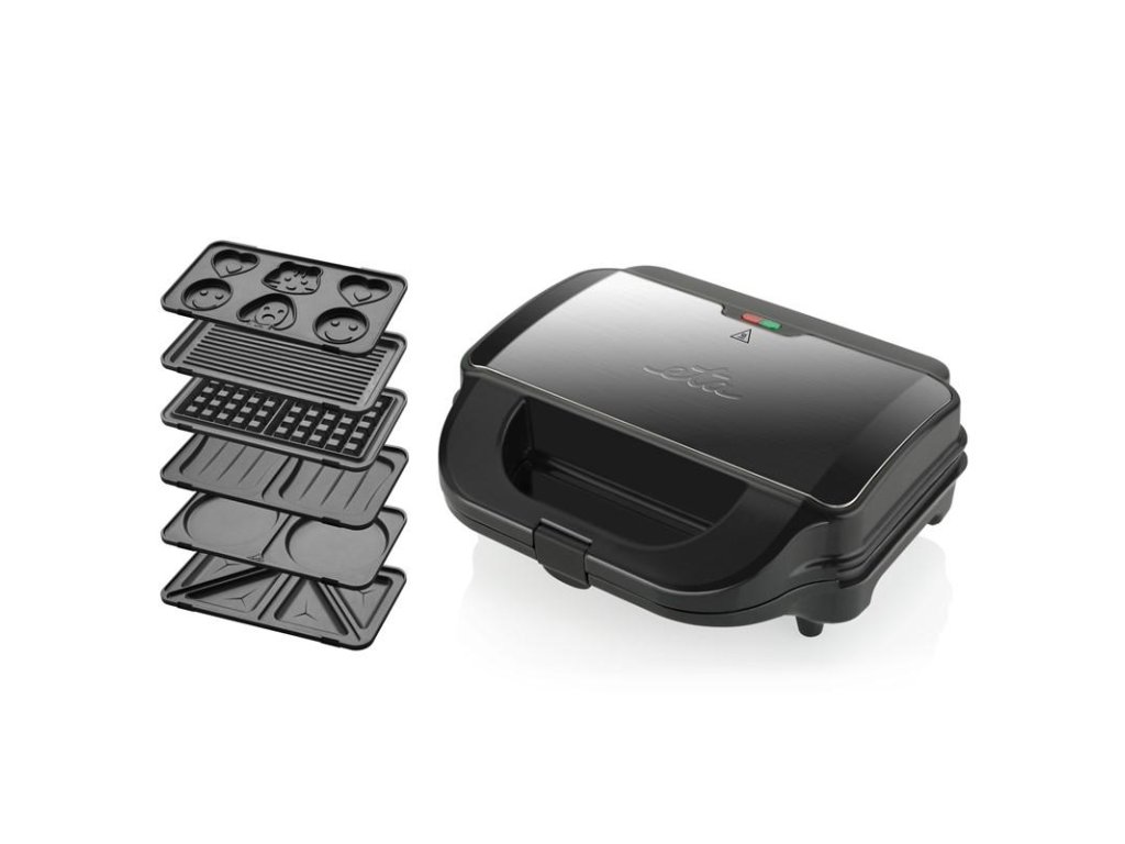 Přístroj je dodáván s 11 výměnnými deskami, které vám umožní připravit nejrůznější typy pokrmů. Kromě klasických trojúhelníkových toustů vytvoříte například vafle, panini, lívance a koláčky pro děti. Můžete jej použít také jako kompaktní domácí gril.