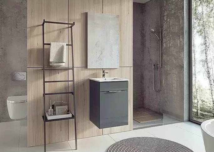 - Sestava koupelnového nábytku Qubo Plus / 40 cm / 2 díly / lesk / dřevotříska / keramika / antracitová