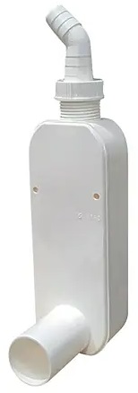 Sifon montovaný na omítku umožňuje připojení pračky nebo myčky nádobí bez zápachu. Je vybaven bílou plastovou úhlovou hadicovou koncovkou. Připojení ke zdi se provádí pomocí 40mm konektoru.