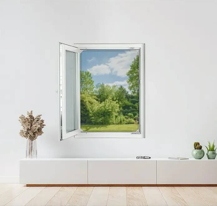 Síť je dodávána jako kompletně připravený produkt s již integrovanou tkaninou, což minimalizuje odpad a šetří čas při sestavení. Speciální síťovina je vyrobena z odolného materiálu, který se automaticky přizpůsobí při vysunutí rámu. Tkanina je navržena tak, aby byla téměř neviditelná a zároveň umožňovala volné proudění vzduchu, což zajišťuje přirozené větrání bez omezení výhledu z okna.