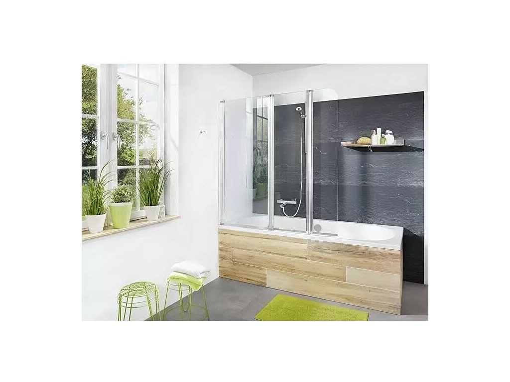 3dílný vanová zástěna nabízí mimořádně účinnou ochranu proti stříkající vodě a je přesvědčivou alternativou ke konvenčnímu sprchovému závěsu. Skládací vanová zástěna se hodí ke všem standardním vanám. Dveřní prvky o tloušťce 4 mm z čirého skla lze pro úsporu místa složit proti sobě a díky nástěnnému profilu otočnému o 180° se dají otočit dovnitř nebo ven. Chromovaný stěnový kompenzační profil zajišťuje bezpečné držení.