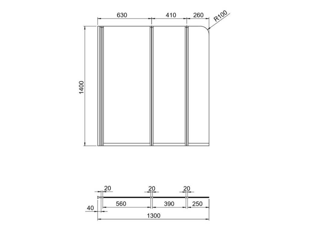 - Skládací vanová zástěna / 3 díly / 130 x 140 cm / 4 mm tvrzené sklo