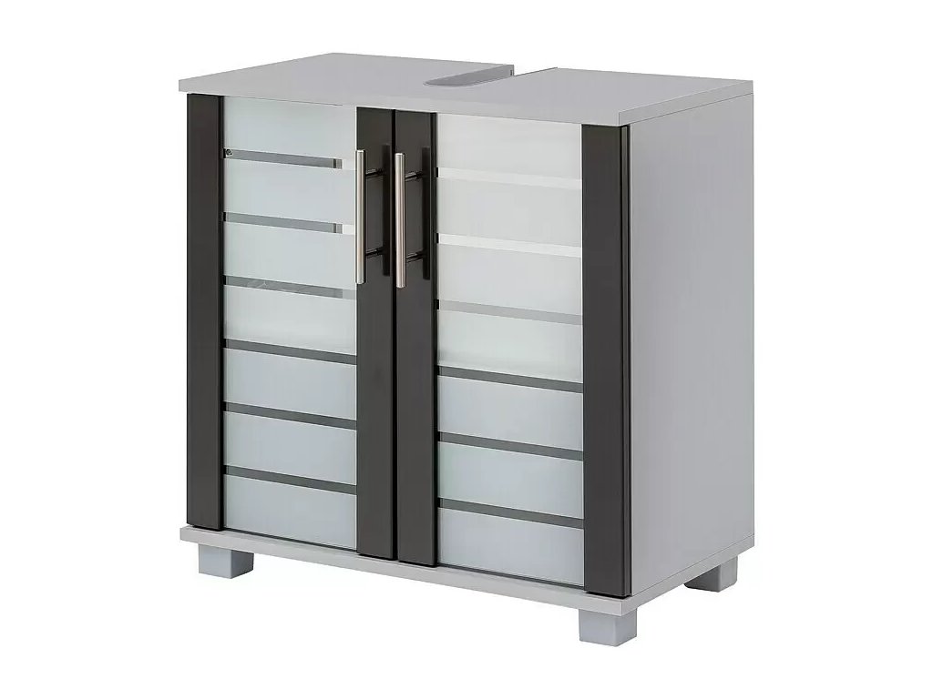 Skříňka pod umyvadlo Schildmeyer Niko / 62,5 x 32,5 x 65 cm / sklo / MDF / šedá / stříbrná