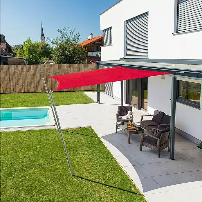 Každý roh plachty je vybaven pevným lanem, které umožňuje rychlé a stabilní uchycení. Na rozdíl od klasického slunečníku nezabírá místo uprostřed posezení, ale rozprostírá se nad vámi a vytváří stín bez překážek. Díky tomu je ideální pro terasy, zahrady, bazény nebo dětské koutky.