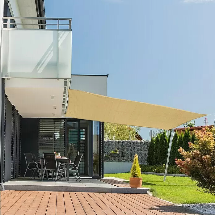 Sluneční plachta Windhager Elba v elegantní barvě slonová kost o rozměrech 3,6 × 3,6 m poskytuje spolehlivou a estetickou ochranu před přímým sluncem. Perfektně se hodí na terasu, balkon nebo do zahrady a stane se praktickým doplňkem každého venkovního prostoru.