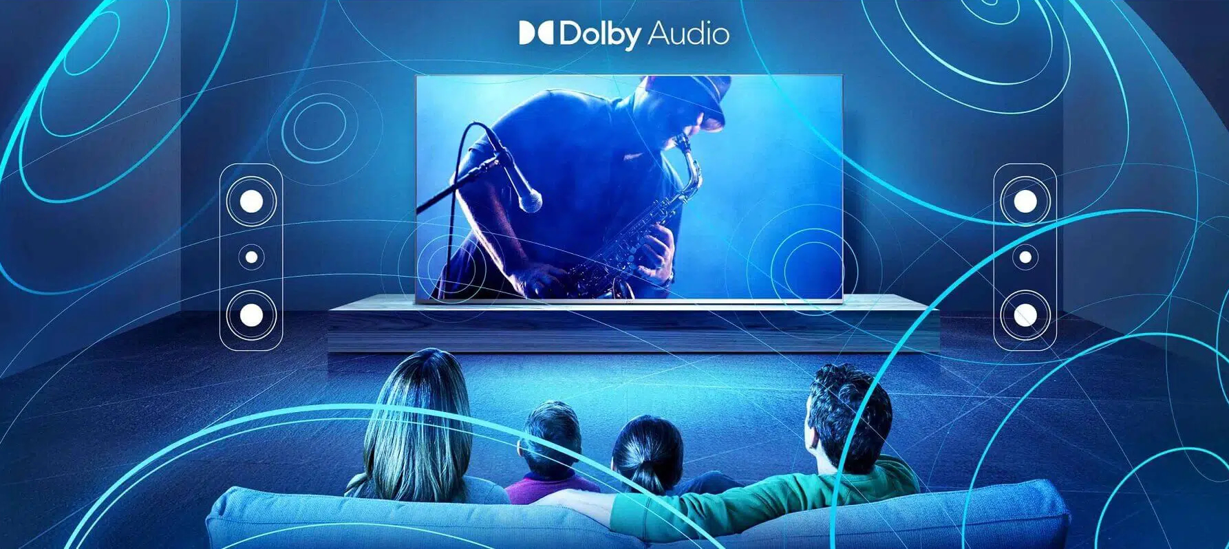 Díky technologii Dolby Audio nabízí televizor čistý zvuk, vyšší úroveň detailů a realistický prostorový zvuk, aby byla zábava, kterou máte rádi, ještě lepší.