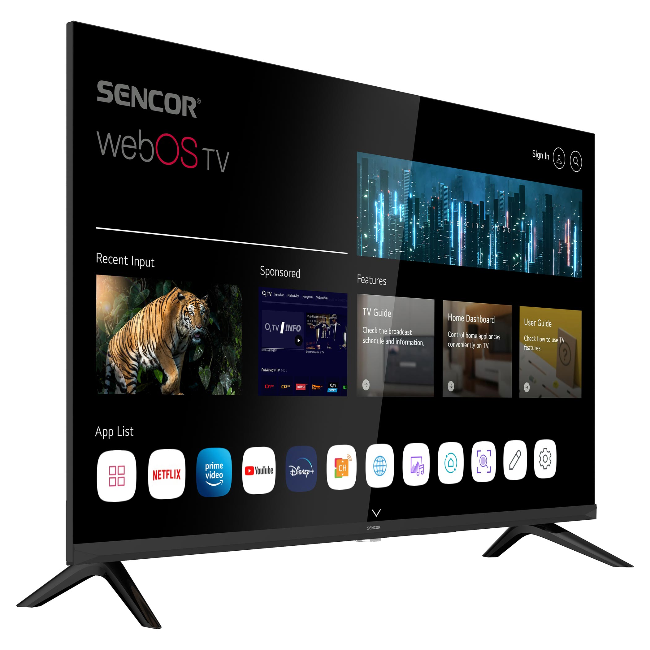 Nová řada televizorů Sencor běží na operačním systému webOS, který je poháněn čtyřjádrovým procesorem ARM Cortex.Tento populární operační systém pochází z dílny korejské společnosti LG a je prověřen dlouholetou praxí a zkušenostmi milionů uživatelů po celém světě. Je uživatelsky velmi přívětivý, rychlý a jeho ovládání je intuitivní. Hlavní výhodou pro uživatele je výběr z velkého množství aplikací. Samozřejmostí je přístup k filmovému obsahu Netflix, Amazon Prime video a k populárním službám IPTV.