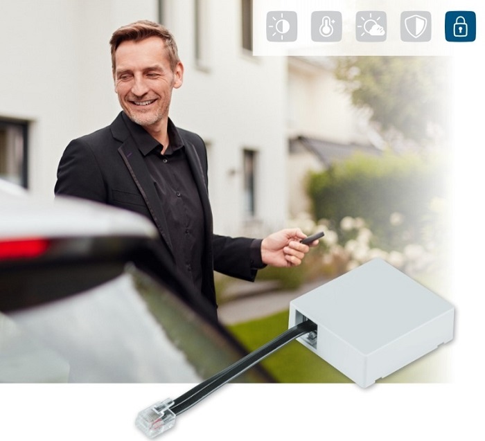 Smart ovladač garážových vrat Homematic IP HmIP-MOD-HO umožňuje integrovat kompatibilní pohony Hörmann do systému Homematic IP a tak pohodlně ovládat garážová vrata nebo příjezdovou bránu ovladačem, pomocí aplikace Homematic IP nebo automatizovaně nastaveným časovým profilem. V případě výpadku internetového připojení zůstane ovládání dálkovými ovladači Homematic IP, díky vzájemné komunikaci mezi zařízeními, nadále funkční.