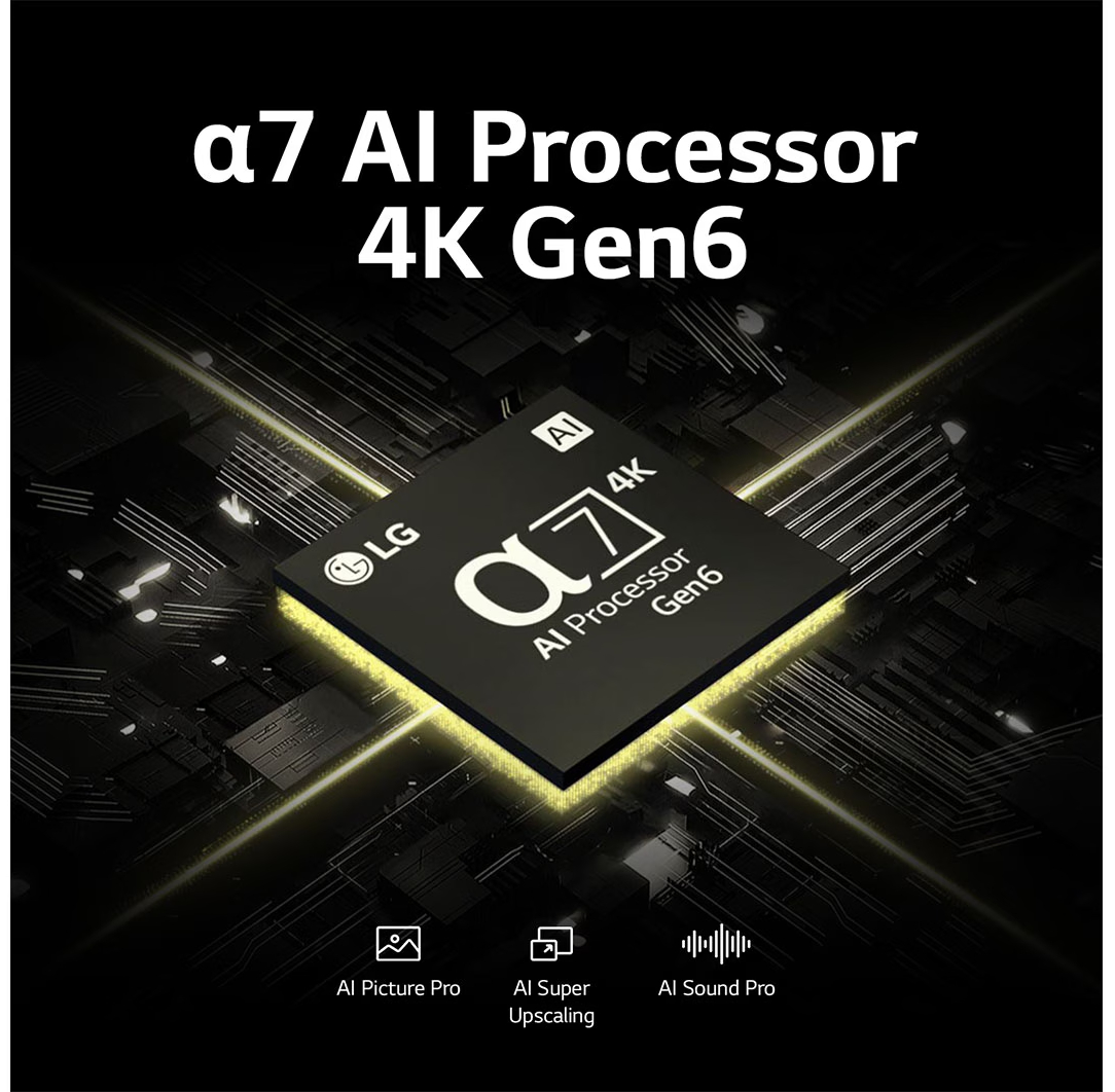 O precizní zpracování obrazu se stará procesor α7 4K 6. generace, který využívá umělou inteligenci pro optimalizaci každého snímku. Funkce AI Picture Pro a Super rozlišení 4K zajistí maximální ostrost, zatímco podpora HDR10 a HLG dodá obrazu přirozenou hloubku a jas.