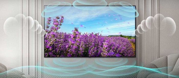 Součástí výbavy televize je technologie vícerozměrového prostorového zvuku Dolby Atmos. Uměla inteligence AI Sound Pro dokáže produkovat zvuk na základě dispozice a akustiky místnosti. Zároveň jej umí přizpůsobit přehrávanému obsahu.