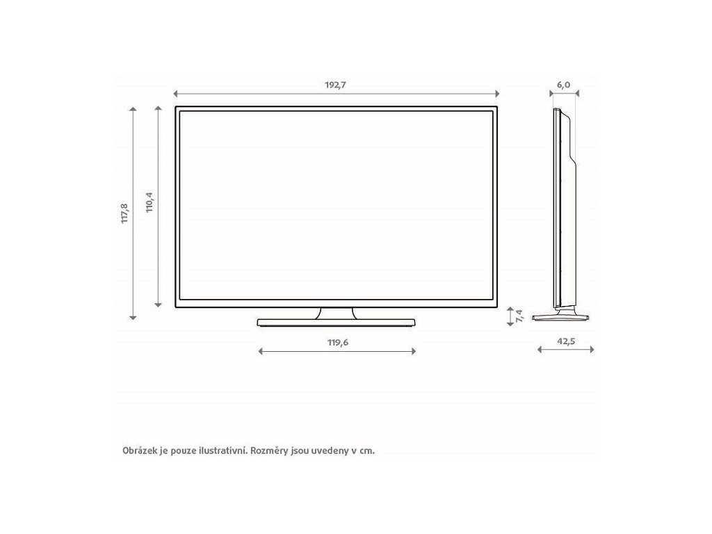 - Rozměry výrobku - se stojanem (Š x V x H) 192,7 x 117,8 x 42,5 cm