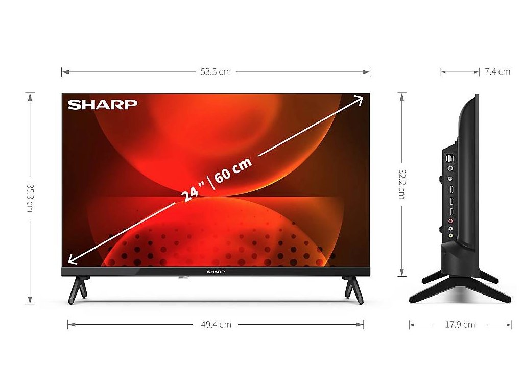 Sharp 24FH2KA nabízí také široké možnosti konektivity včetně HDMI a USB portů, což umožňuje snadné připojení herní konzole, set-top boxu nebo externího disku. Nízká spotřeba energie, jednoduché ovládání a kompaktní rozměry z této Smart TV dělají praktické a univerzální řešení pro každého, kdo hledá kvalitní televizi v menším formátu.