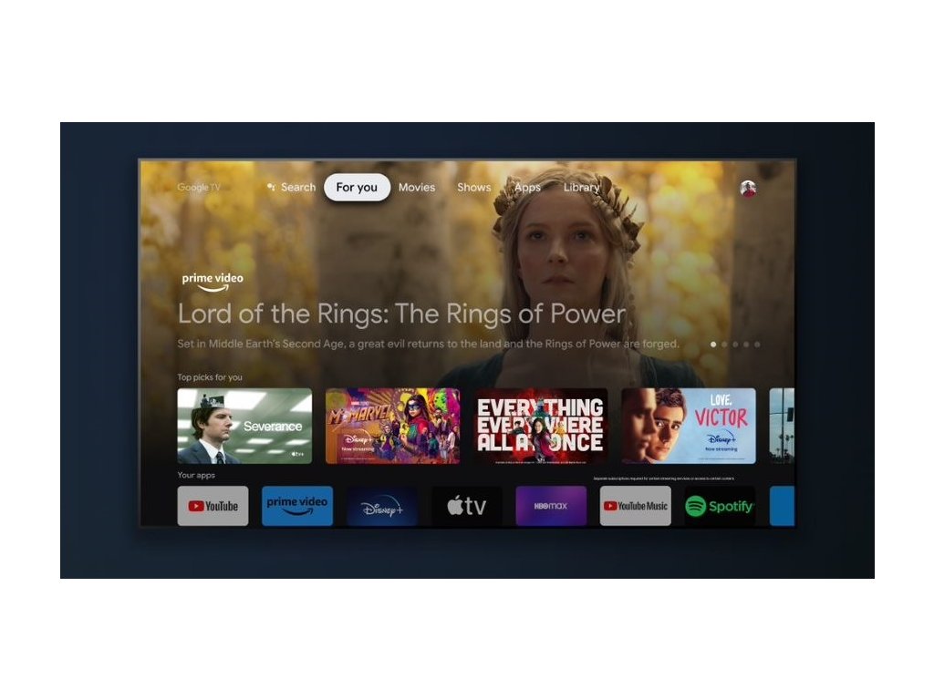 Díky tomu, že je televizor vybaven celosvětově oblíbenou platformou Google TV, nabízí nekonečné množství obsahu včetně filmů, seriálů, pořadů a dalších médií, včetně aplikací a předplacených služeb.