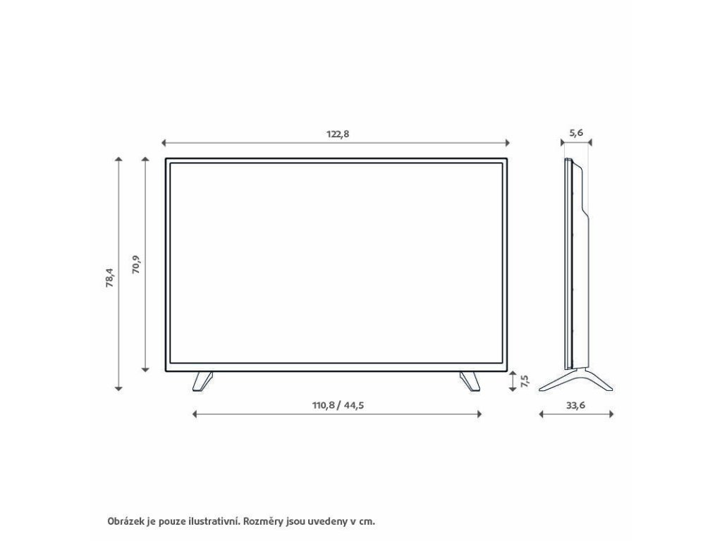 - Rozměry výrobku - bez podstavce (Š x V x H) 122,8 x 70,9 x 5,6 cm