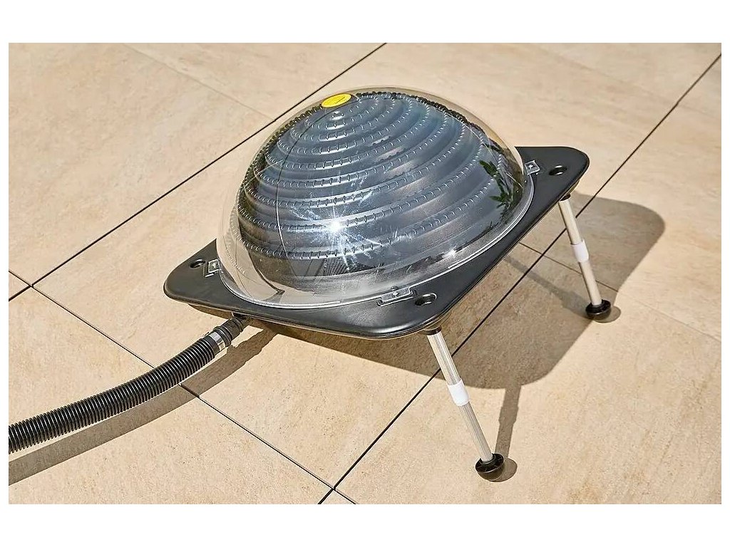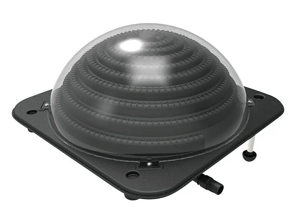 Solární kolektor Malibu Dome je jednoduché a efektivní řešení pro ohřev vody v bazénech pomocí sluneční energie, které funguje zcela bez použití elektřiny nebo paliva. Díky svému designu s průhlednou „kupolí“ vytváří efekt malé skleníkové komory, která zachycuje více slunečního záření a přenáší ho do vody. Sluneční energie je následně absorbována černými smyčkami hadic umístěnými pod kupolí, což zvyšuje účinnost ohřevu vody bez nákladů na provoz.