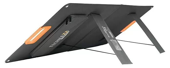 Panel váží přibližně 4 kg a dá se snadno složit do podoby praktického kufříku s rukojetí. Díky tomu se pohodlně přenáší a nezabere mnoho místa v autě ani v batohu. Při rozložení nabízí dostatečně velkou plochu pro efektivní sběr energie a opěrné nohy zajistí stabilní umístění.