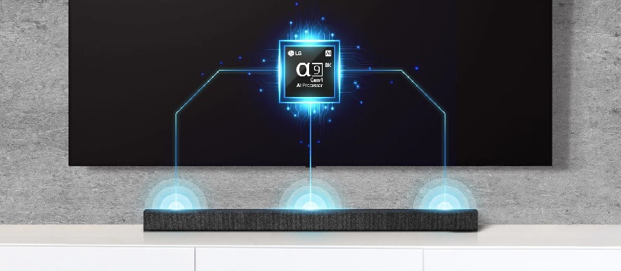 Ve spolupráci s procesorem AI 2021 vytvoří soundbar lepší zvuk. Díky výkonu TV procesoru s AI budou všechny zvuky čistější a jednotnější. Vy tak uslyšíte všechno zřetelněji a rovnoměrněji, přičemž nezáleží na zdroji obsahu. Využijte na maximum spojení soundbaru a televize LG.