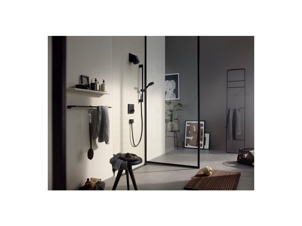 Sprchový set Hansgrohe Pulsify Select S v matné černé s 67 cm dlouhou sprchovou tyčí vám poskytne každodenní potěšení ze sprchování s veškerým komfortem. Stačí se podívat na nový typ disku vodních paprsků v moderní matně černé a je jasné, že řada Pulsify je zaměřena na uživatele. Trysky této sprchové hlavice o průměru 105 mm jsou uspořádány do několika soustředných kružnic, takže připomínají jemné pohyby vody. Díky nadčasovému kruhovému designu se řada Pulsify skvěle hodí do jakékoli koupelny. Různé typy proudů se přepínají stisknutím tlačítka Select. Proud PowderRain jemně zahalí tělo do závoje z těch nejjemnějších kapiček. Proud IntenseRain uživatele povzbudí a je ideální ke spláchnutí šampónu. Třetím typem je silný masážní proud. Ze sprchy se tak stane oáza každodenní relaxace.