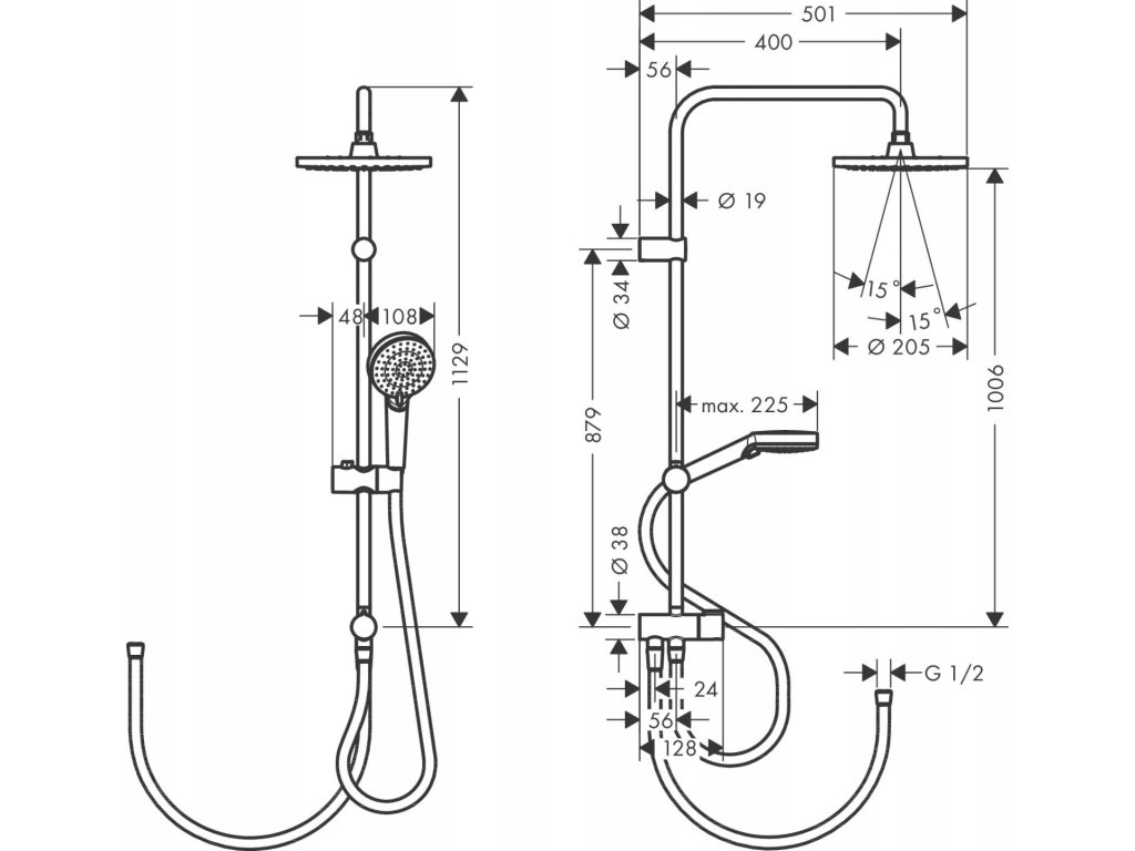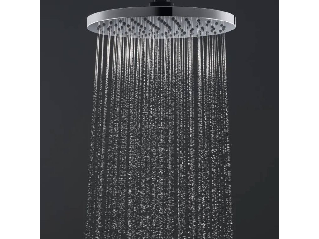 Horní sprcha o průměru 205 mm nabízí široký a rovnoměrný proud vody Rain, který zajišťuje osvěžující zážitek z každé sprchy. Díky nastavitelnému úhlu sprchové hlavice si můžete proud vody upravit tak, aby vás nepříjemně nezamokřil – ideální například pro rychlé opláchnutí bez namočení vlasů.