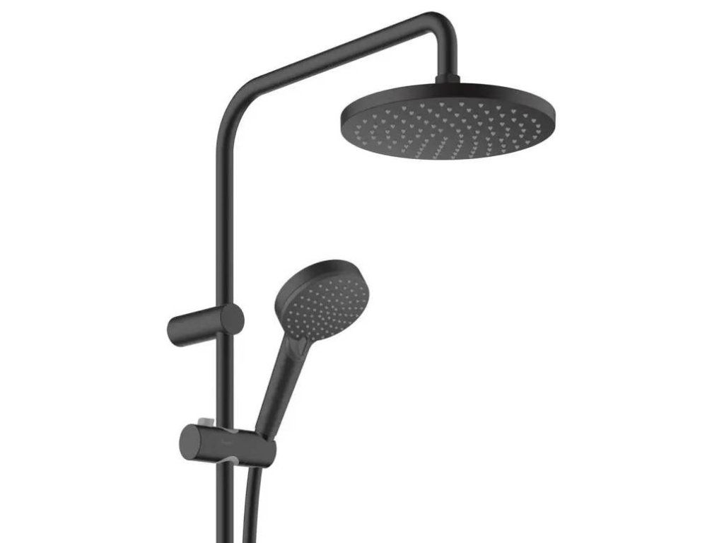 Sprchový systém Hansgrohe Vernis Blend MATNÁ ČERNÁ Showerpipe 200 1jet EcoSmart Reno promění každou koupelnu na elegantní a moderní prostor. Matná černá povrchová úprava dodává sprše luxusní vzhled, který ladí s moderním interiérem, a zároveň umožňuje snadnou integraci do stávajícího systému baterií nebo přívodu vody.