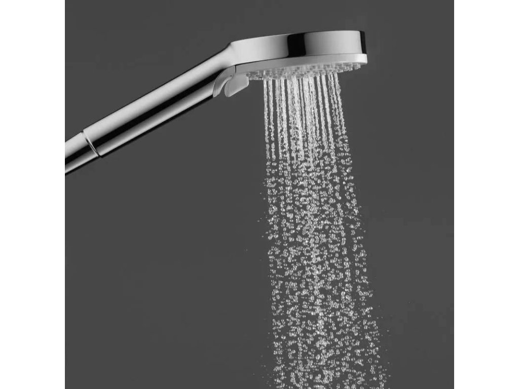 Ruční sprcha s funkcí Rain a IntenseRain je vždy po ruce díky výškově nastavitelnému držáku s aretací tlačítkem. Délka sprchové hadice 1,60 m zajišťuje volnost pohybu, a silikonové trysky QuickClean umožňují snadné odstranění vodního kamene.