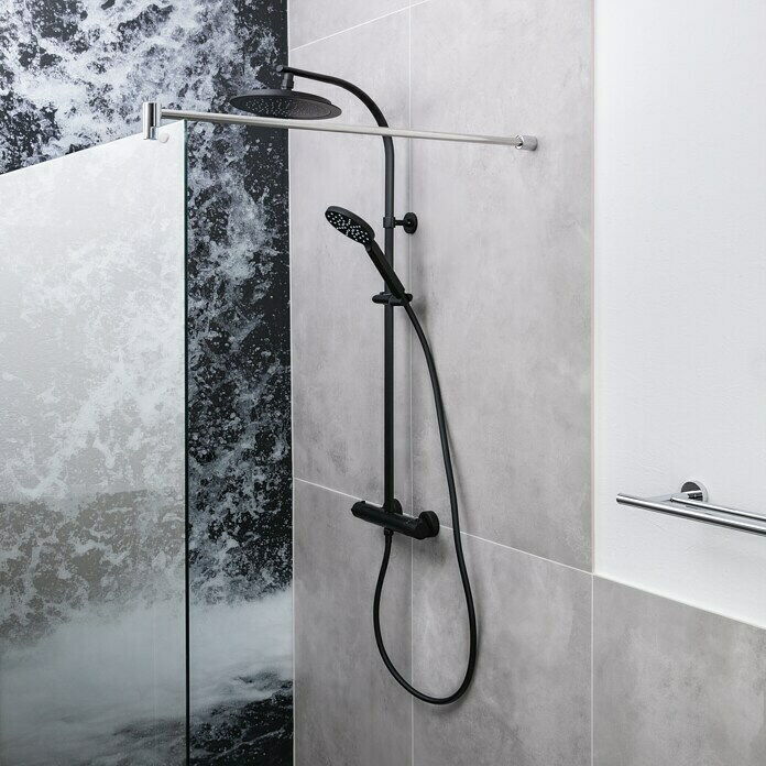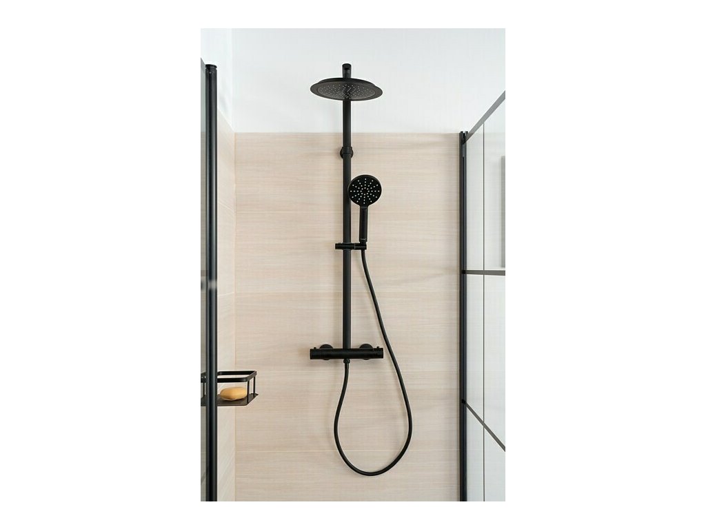 - Sprchový systém / termostatická hlavice / 3 typy trysek / 7,9 l/min. / bezpečnostní zámek na 38°C / mosaz / ABS / černá