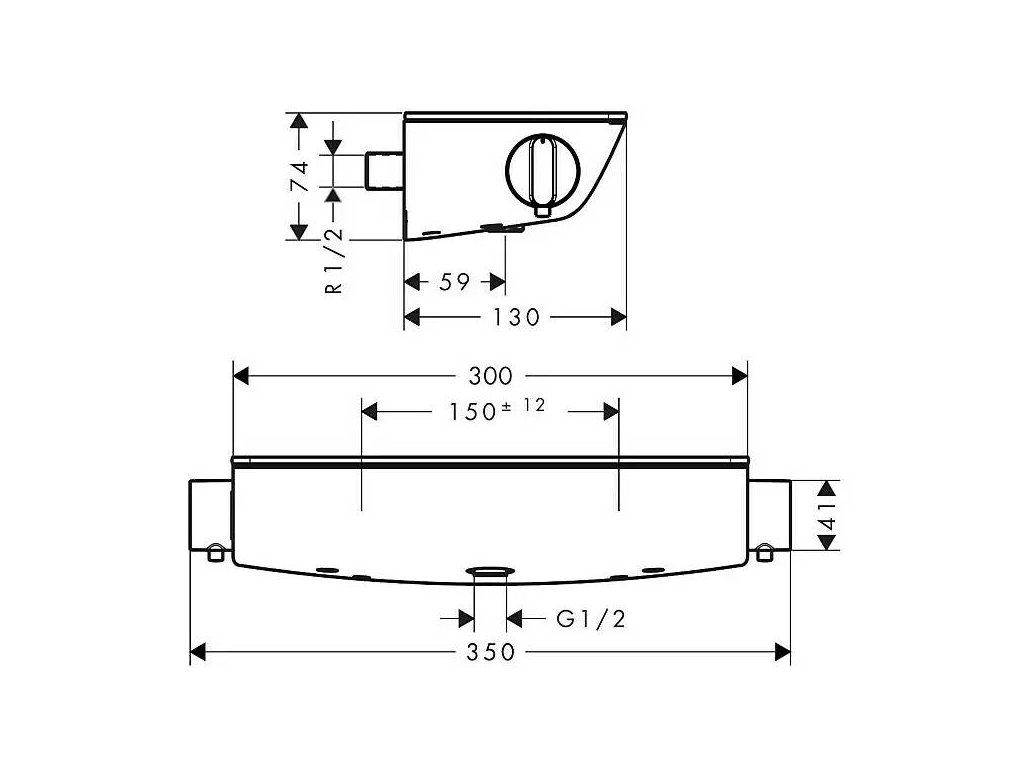 - Sprchový termostat Hansgrohe Ecostat Select / zrcadlová police / 150±12 mm / 10 l/min. / lesklý povrch / bezpečnostní zámek na 40 °C / chrom