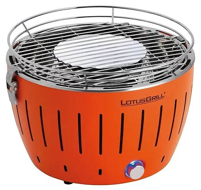 Stolní gril na dřevěné uhlí LotusGrill S / Ø 26 cm / nerezová ocel / oranžová