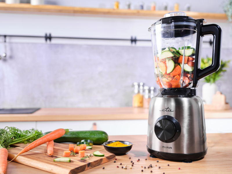 Stolní mixér ETA Mira II zvládne více než přípravu lahodného mléčného koktejlu. Ve skleněné 1,5l nádobě dohladka rozmixuje krémovou polévku či omáčku, připraví zdravé smoothie a poradí si i s hladkým těstem na palačinky.