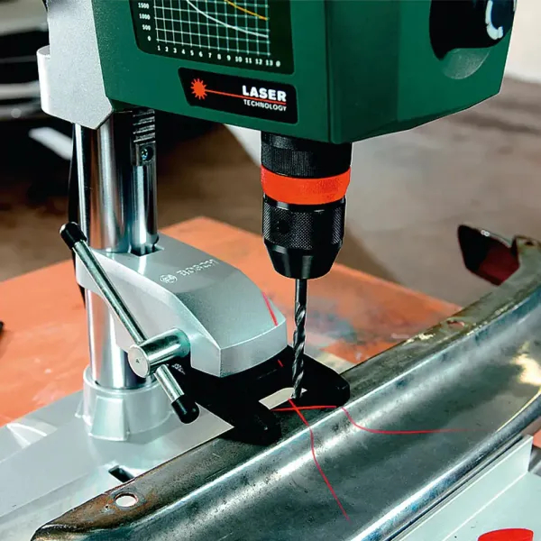Stolní vrtačka Bosch PBD 40 představuje moderní nástroj pro přesné vrtání v dílně nebo domácí dílně. Výkonný motor s příkonem 710 W a plynule nastavitelnými otáčkami v rozsahu 200–2500 ot./min. umožňuje snadno přizpůsobit rychlost vrtání různým materiálům, jako je dřevo, kov nebo plast. Díky elektronické regulaci zůstávají otáčky stabilní i při vyšším zatížení, což přispívá k přesným a čistým výsledkům.