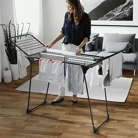 Přinášíme vám sušák na prádlo Vileda King Ultimate Black Edition – ideální řešení pro efektivní a pohodlné sušení prádla doma. Tento robustní a stabilní sušák s hliníkovými dráty a ocelovou konstrukcí nabízí 20 metrů šňůry, takže pojme prádlo ze dvou praček najednou. Díky extra velké ploše se prádlo suší rovnoměrně a zkracuje se doba žehlení. Elegantní matně černý design a transportní kolečka zaručují snadné přemisťování, zatímco integrovaný držák na drobné prádlo poskytuje praktické řešení pro ponožky či spodní prádlo. Sušák je odolný, stabilní a zároveň kompaktní pro skladování – ideální kombinace praktičnosti a kvality pro každou domácnost.