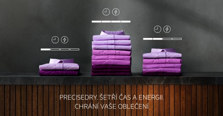 Rovnoměrné sušení zažijete i bez třídění prádla. Vyhnete se nepříjemnému přesušení nebo nedosušení. Technologie tepelného čerpadla poskytuje přesnou dávku tepla s ohledem na optimální spotřebu energie.
